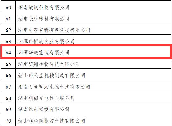 根據(jù)《湖南省中小企業(yè)技術(shù)創(chuàng)新“破零倍增”三年行動計劃(2020-2022)》(湘工信中小發(fā)展〔2020〕151號)精神,經(jīng)企業(yè)自愿申報,市縣工信部門推薦,《全省中小企業(yè)技術(shù)創(chuàng)新“破零倍增”行動重點企業(yè)名單(2020年)》予以發(fā)布。湘潭華進重裝有限公司等入圍行動企業(yè)名單。