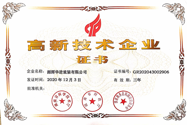 近日,湘潭華進(jìn)重裝有限公司收到《高新技術(shù)企業(yè)證書》。本次系華進(jìn)重裝首次申請高新技術(shù)企業(yè)認(rèn)定,華進(jìn)重裝通過認(rèn)定連續(xù)三年內(nèi)(2020-2022年度)將享受高新技術(shù)企業(yè)的相關(guān)稅收優(yōu)惠政策。
