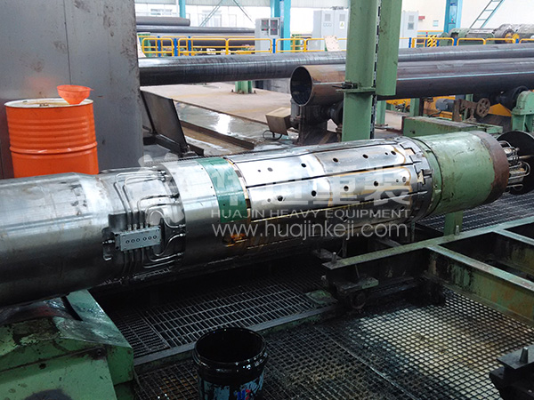 鋼管擴徑采用步進式擴徑,通過冷擴徑,張力超過鋼管的屈服極限,使其具有統一的變形;擴徑的目的是為了在保證了鋼管內徑精度的同時,對鋼管全長進行矯直、整圓,提高鋼管尺寸精度,有效改善鋼管鋼管預彎、成型、焊接的殘余應力的分布狀態。鋼管擴徑時,對鋼管進行內壁潤滑;鋼管內壁潤滑目的是為減少擴徑過程中鋼管內壁和擴徑工具之間的摩擦,擴徑過程中用乳化液對鋼管內壁進行潤濕。